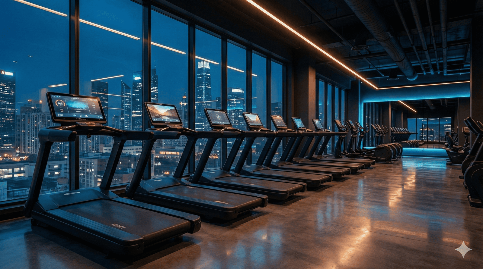 Passadeiras, elípticas e remos de última geração com monitorização cardíaca.